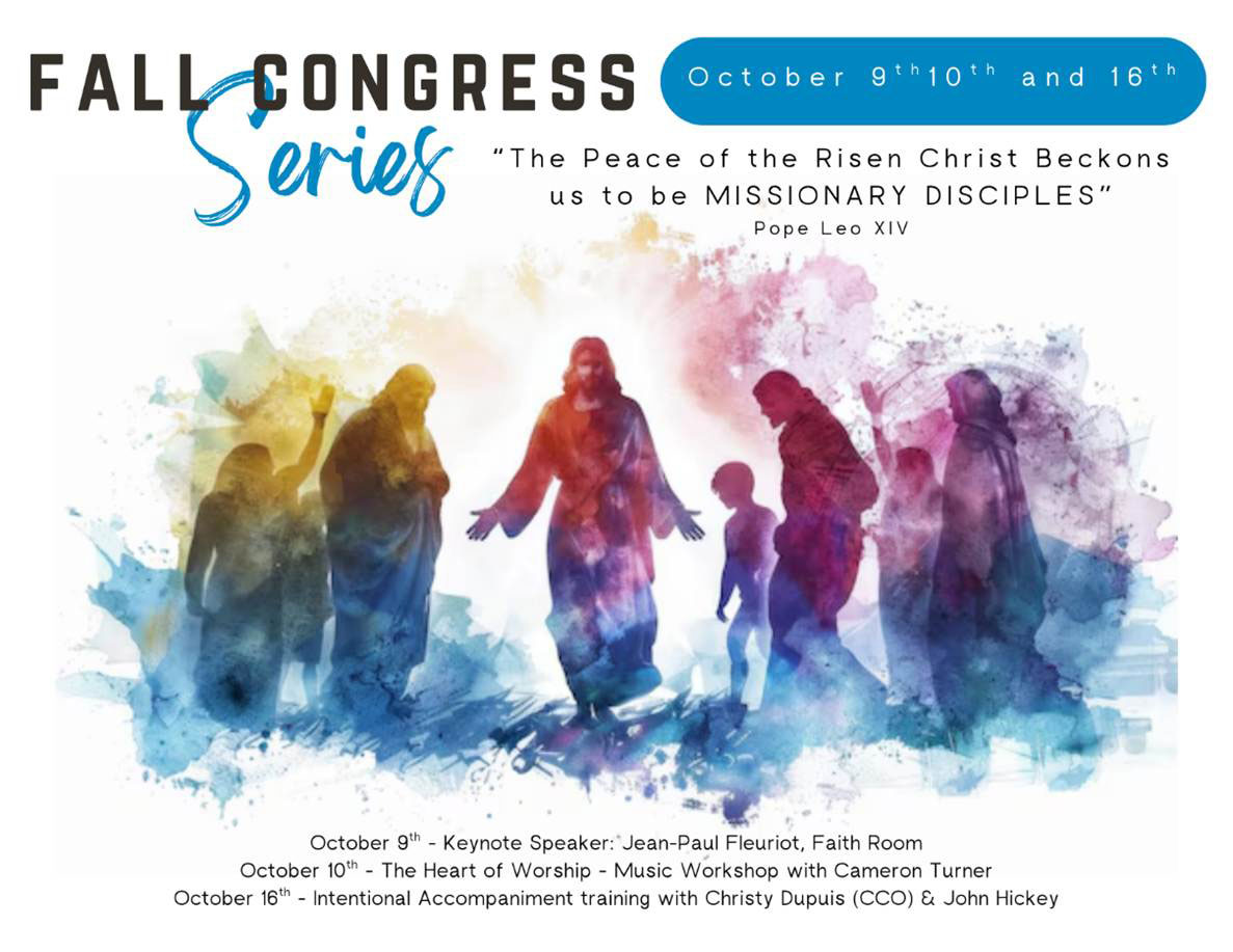 OCT 10 Congress Music Ministry Workshop – 7:00 p.m. to 9:30 p.m. Friday, Oct. 10, 2025 at Saint Anne Catholic Church, 217 Lenore Drive, Saskatoon, with Cameron Turner and Jean-Paul de Fleuriot. Free-will offering (refreshments will be served). – REGISTRATION LINK